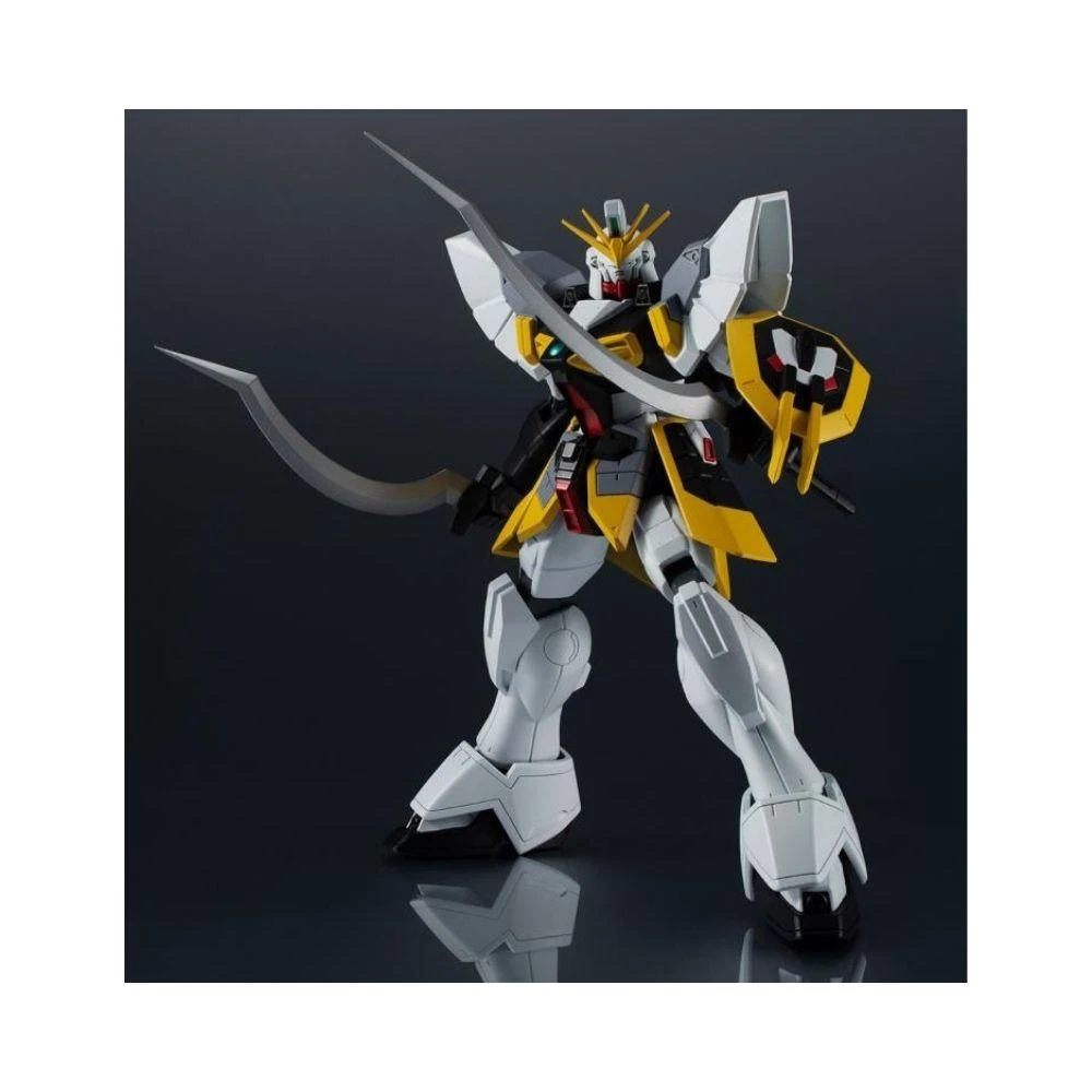 Gundam Sandrock, from Mobile Suit Gundam Wing, joins the Gundam Universe series! It comes with a large shield and Heat Shotel for dynamic attack-scene poses. Display alongside the Gundam Universe Gundam Wing (sold separately) to expand your play possibilities!