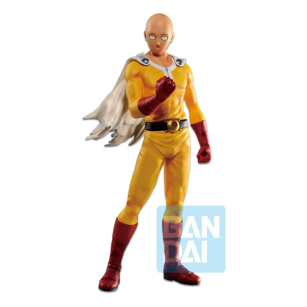 From the anime One-Punch Man, the Ichibansho Saitama stands about 10 inches tall and features his serious expression.