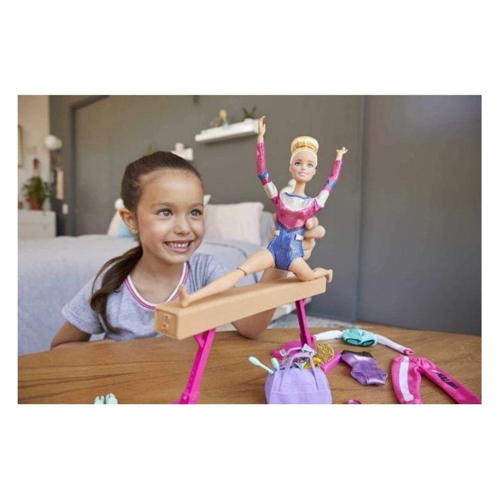 - Explore a world of creative play and storytelling fun with the Barbie Gymnast Playset!