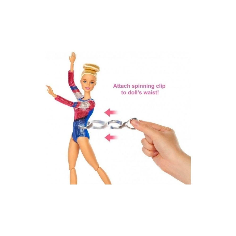 - Attach spinning clip to Barbie Gymnast doll and watch her flip across the beam and perform other fun gymnastic moves!