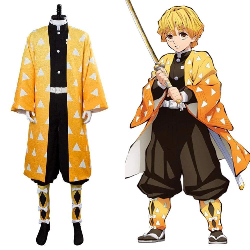 Anime Demon Slayer: Kimetsu no Yaiba Agatsuma Zenitsu Cosplay Costume Full Set Yellow Printed Kimono Belt Turtleneck Top