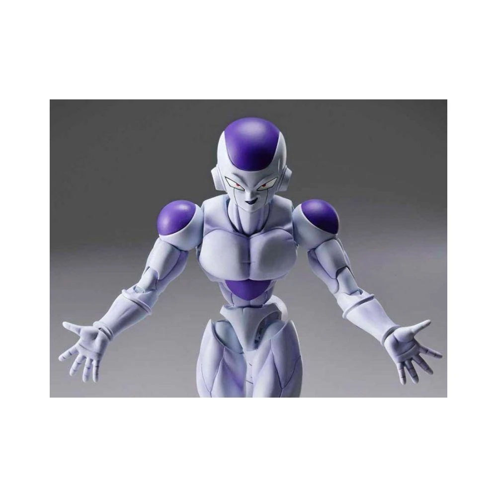 A new breed of action figure model kit that blends high articulation and detailed sculpts together in one package! Frieza is constructed using layered colored plastic techniques that blend the seam lines together with the contours of his muscles leading to a natural appearing joint system.