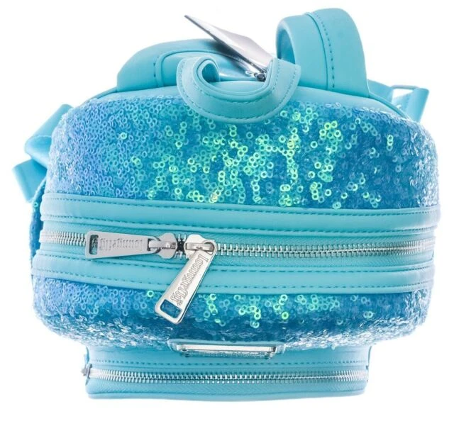 The traditional Cinderella mini backpack is not as rich in its blue colors as the more generalized castle backpack was, but this Loungefly mini still has a lot of elegance in its design! The intricate details and castle imagery on the backpack’s lining are some particularly nice touches.