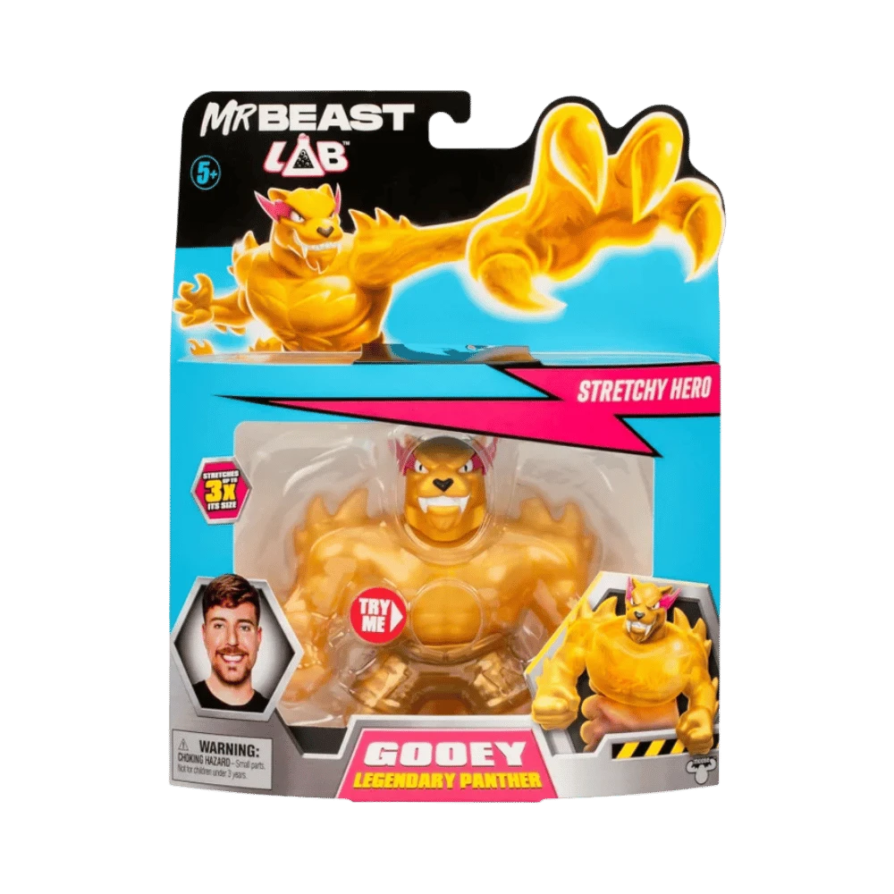 Unleash your inner hero with the MRBEAST LAB W1 STRETCH HERO LEGENDARY PANTHER! Made by Moose Toys, this legendary panther figurine is designed with stretchy, durable material for endless play and adventure. Become a hero and save the day!