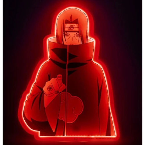 Itachi Light-Up Neon Style 40 Cm One Piece Naruto Shippuden. Teknofun presents this Itachi Uchicha lamp, based on the character from the well-known Japanese animated series “Naruto Shippuden”. It is a 30 cm LED lamp that works with a cable connected to the electrical current that you can hang on the wall to decorate it or display it on the support base that is included.