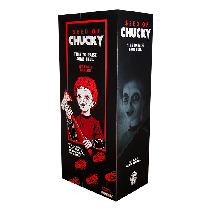 The Officially Licensed One-To-One Scale Seed of Chucky Glen Doll is the most screen accurate Glen Doll ever produced. This Doll was developed by Tony Gardner and Alterian Inc. the company responsible for making the actual screen used Doll! Every detail of this Doll comes directly from the actual screen used molds, including the clothing which were replicated using screen used swatches and the shoes.