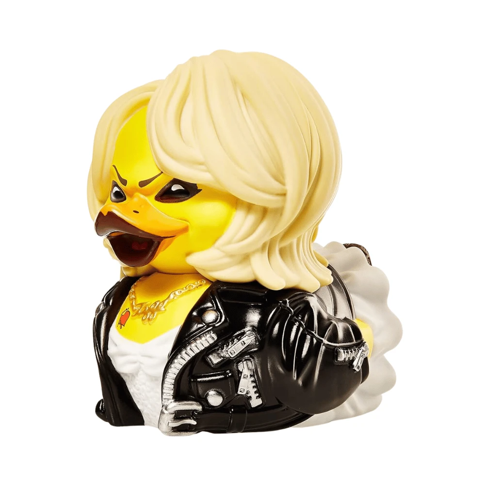 Embrace your love for horror and add some playful terror to your bathtub with the Tiffany Childs Play 1st Edition Bride of Chucky Cosplaying Rubber Duck by TUBBZ. This creepy cute collectible will bring a whole new level of fun to bath time, reminding you of the iconic horror film with every splash.